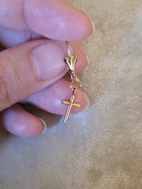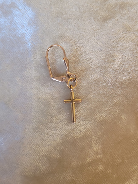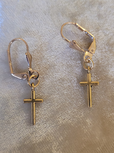 Les boucles portent chacune une petite croix dorée, assez discrète.