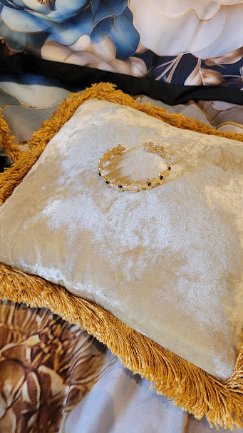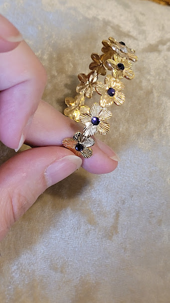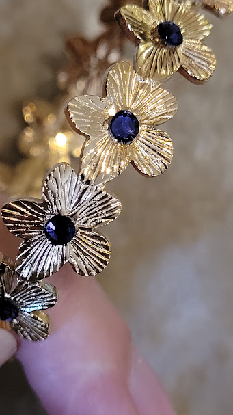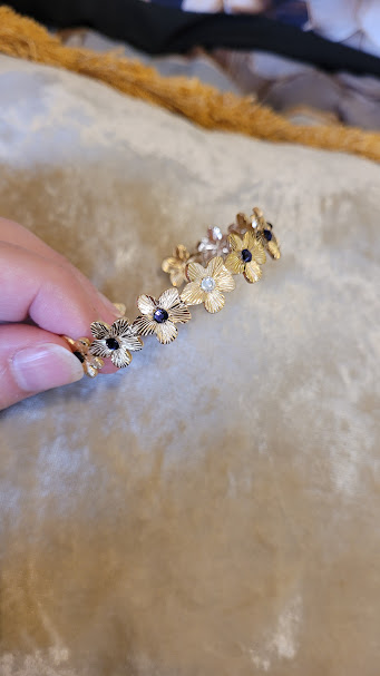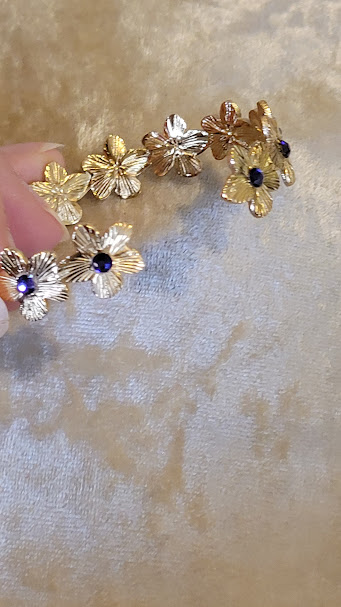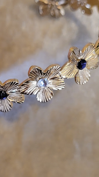 Ce bracelet peut ajouter à votre tenue une touche fantaisiste, ou rappeler votre féminité ou votre goût pour les fleurs dans une période comme le printemps… Il peut rappeler aussi un univers dans les tons indigo, dans lequel brillerait au milieu un astre unique. 💜