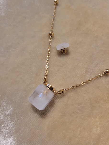 Vous pouvez porter ce collier discret au cou, et en profiter pour vous mettre du parfum en le dévissant dans la journée.