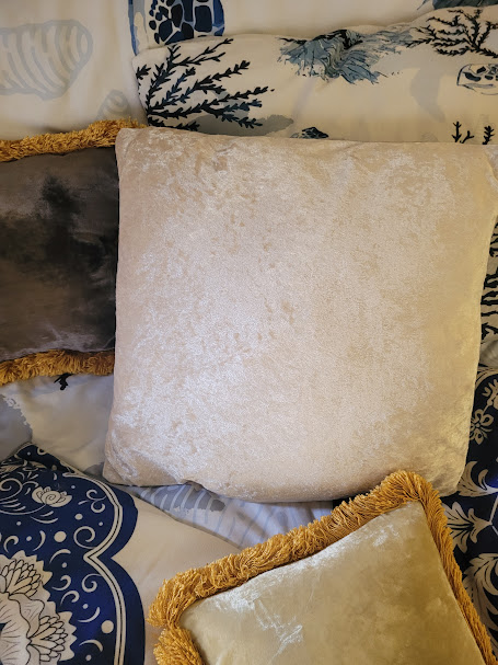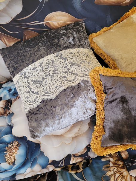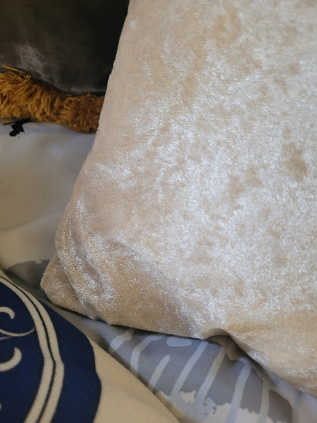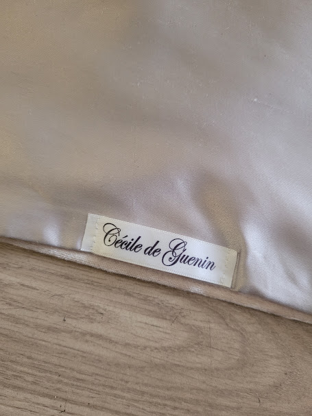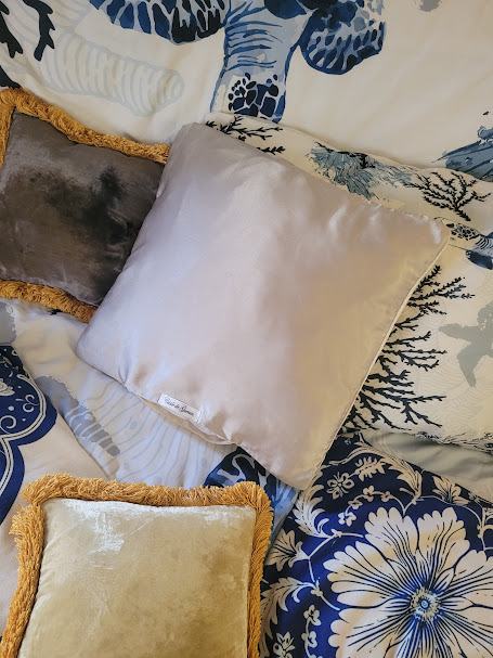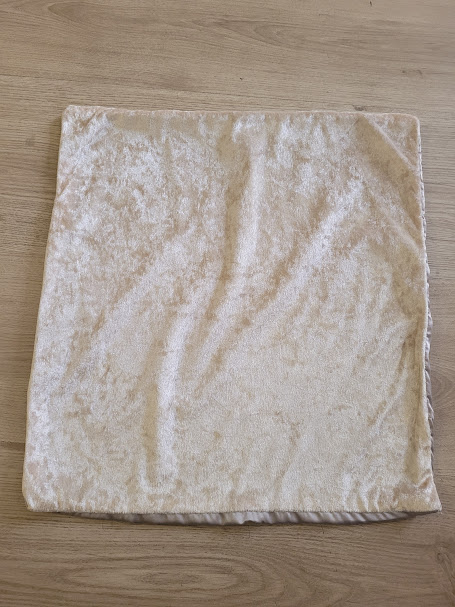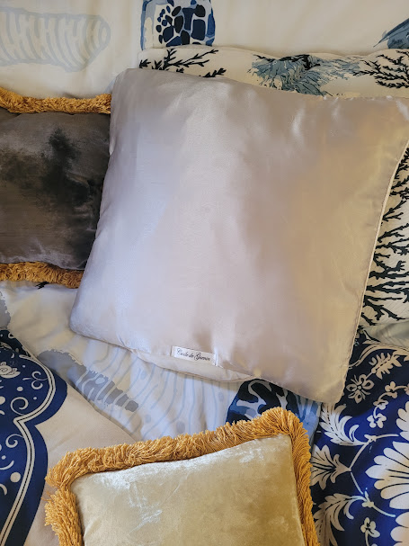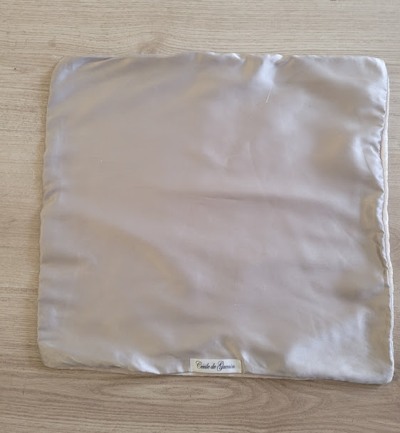 Housse de coussin avec velours blanc et dos en satin gris clair